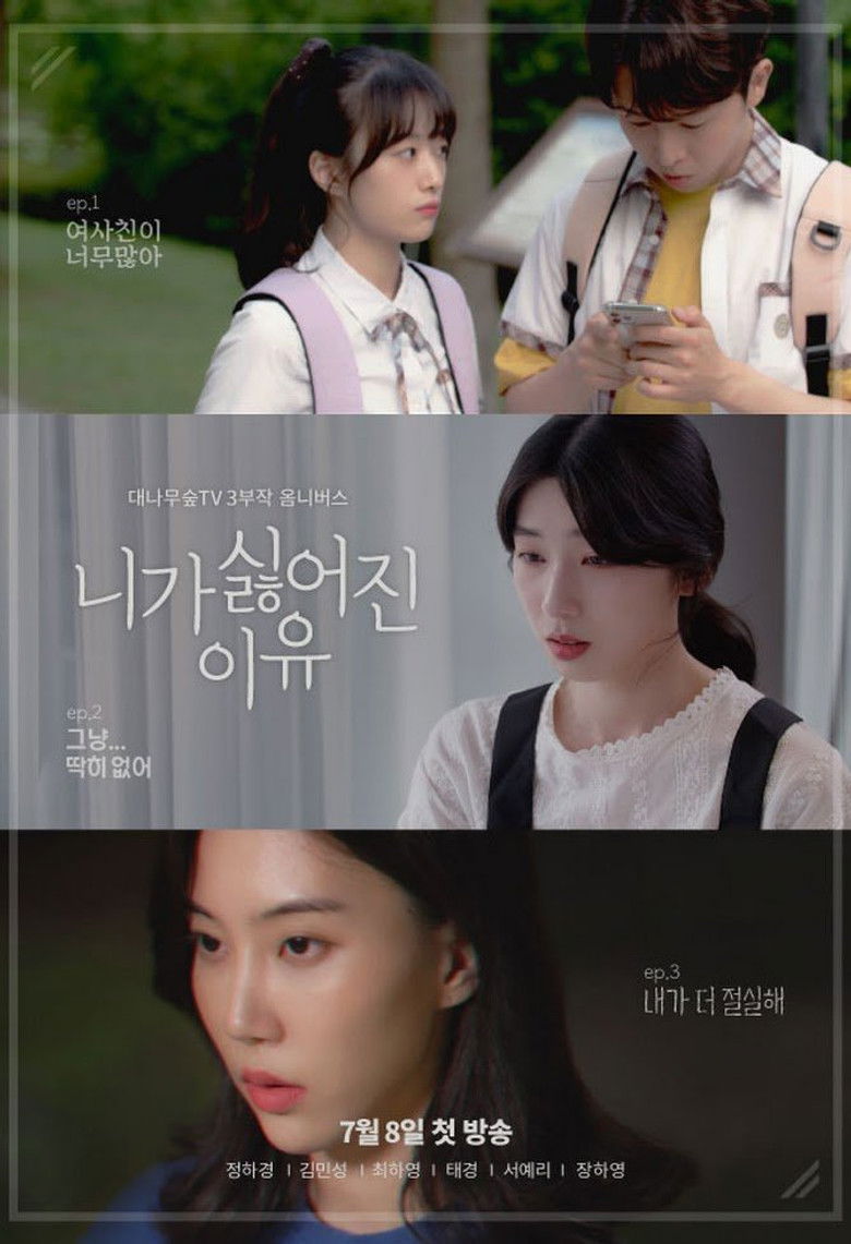 Ep. 1 Eun Ah is worried that her boyfriend has too many female friends. Ep. 2 Yoo Jin is flustered because her boyfriend starts to fall out of love. Ep. 3 Joo Hee and Mi Na have spent a long time together as trainees to debut as an idol group, but there are hidden conflicts between the two.